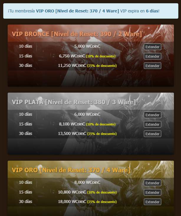La membresía VIP se adquiere desde el panel de usuario de la página oficial.