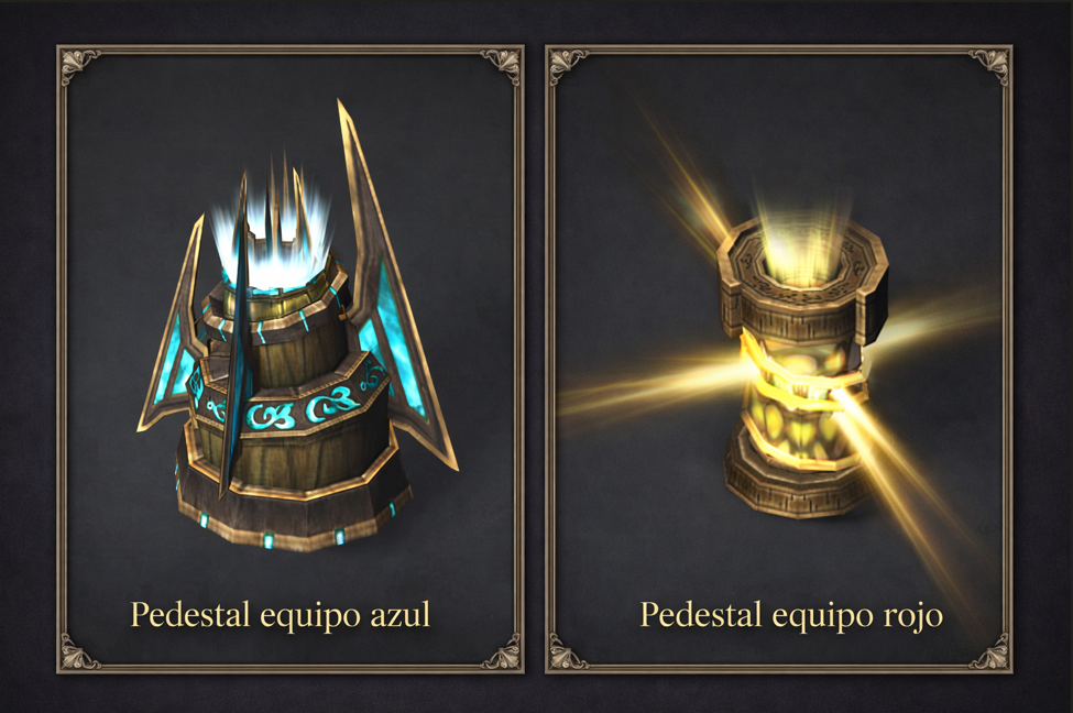 | Puntuación | El jugador que recoja el ítem debe llevarlo hasta el pedestal de su base. Cada entrega suma 1 punto |